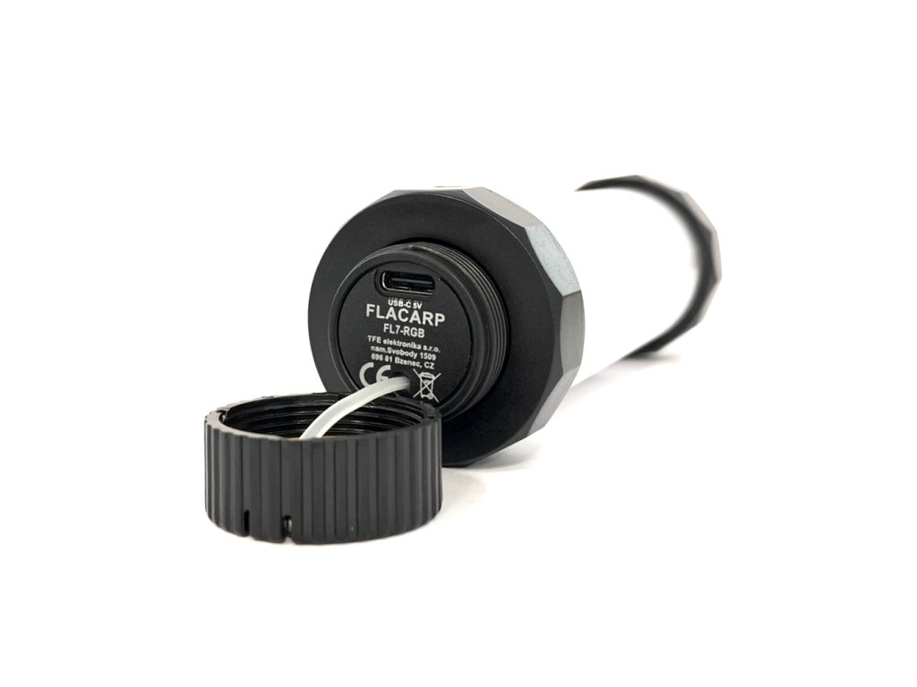 New version of the popular waterproof, RGB light FLACARP FL7 with integrated receiver. Now with a USB-C connector and the option to set a warmer shade of white in addition to cool white. Of course, there is also a position light function with an extreme light duration of up to 360 hours. A feature that has particular application for marking the fishing spot when night fishing.