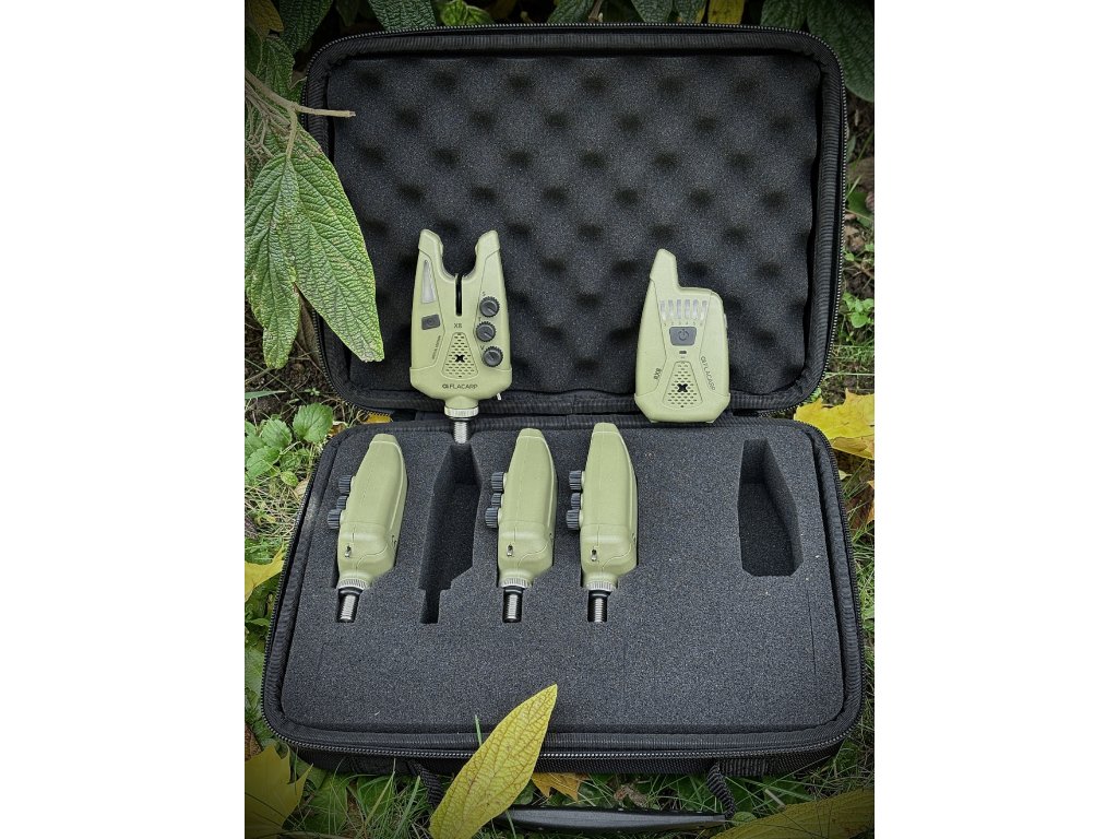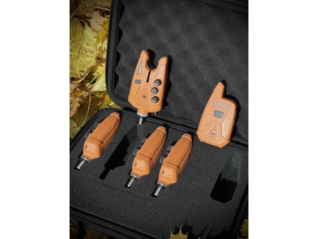 The limited edition FLACARP X8 + RX8 set combines top-class Czech bite alarms with the RX8 wireless receiver in a perfectly matched ensemble – now available in eight attractive color variants: blue, yellow, orange, khaki, grey, granite grey, white, and purple.